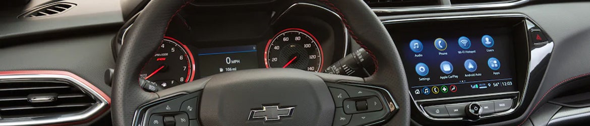 The 2023 Chevrolet Trailblazer cabin is the epitome of comfort and convenience. The entry-level LS starts with a 60/40-split folding rear seat so you can configure the cabin to allow for more passengers, cargo, or a balance. Also standard is the Chevrolet Infotainment 3 Plus System, accessed via a 7-inch touchscreen with a Wi-Fi hotspot. Go with the LT trim to add interior features such as a power-adjustable driver's seat with lumbar support and heated front seats. The RS features a leatherette with cloth upholstery and a heated steering wheel. Lastly, the premium ACTIV gets you a leather-wrapped steering wheel, shift knob, and simulated leather upholstery.